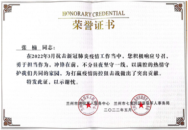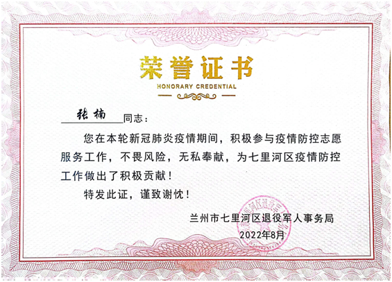 <meta name="description" content="２月１０日，兰州市政建设集团第一工程公司收到兰州市退役军人服务中心发来的一封感谢信，对党员张楠同志在疫情期间勇于担当防疫志愿服务做出的积极贡献表示崇高的敬意和衷心的感谢。张楠同志在新冠病毒疫情防控工作" />